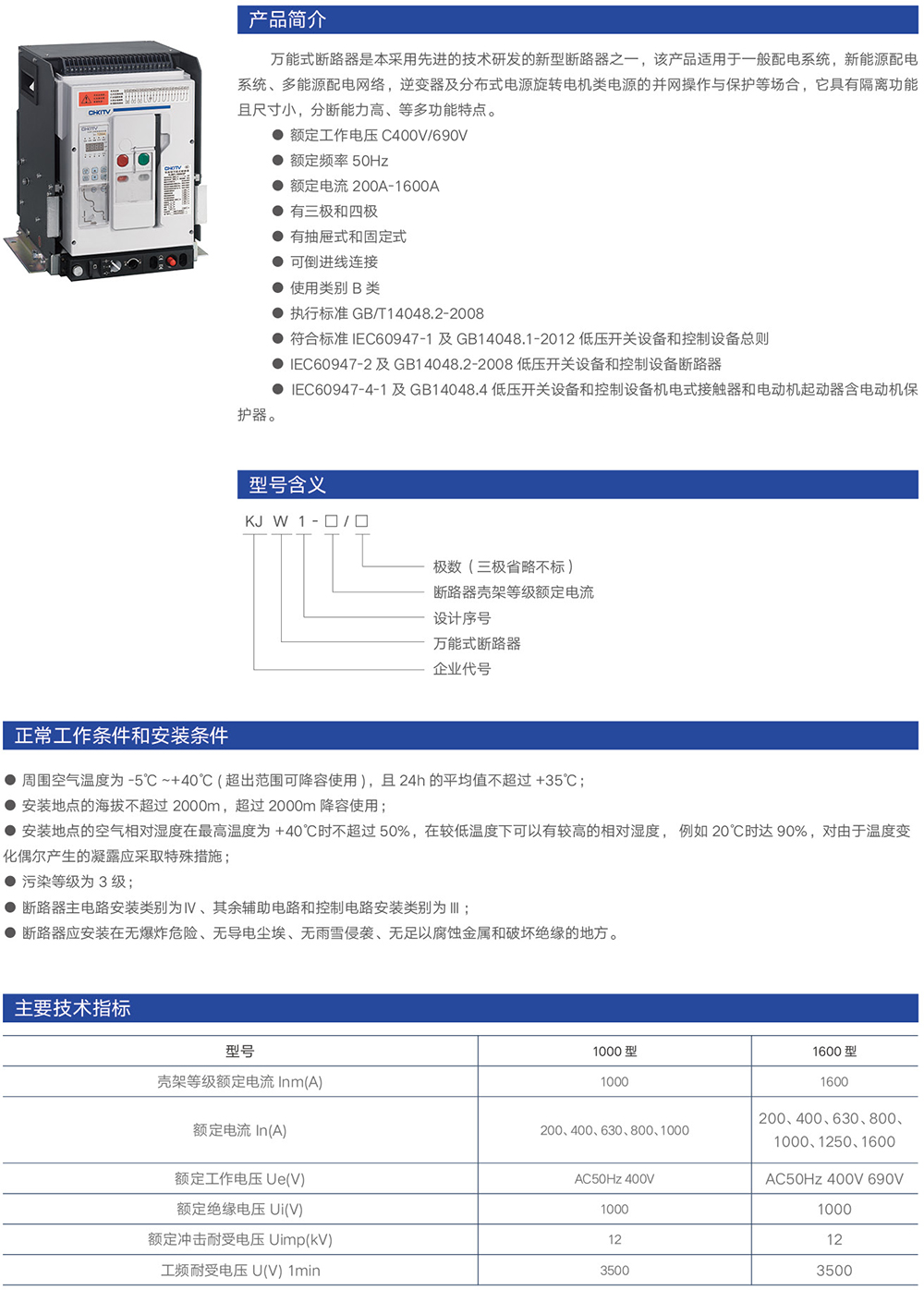 上一篇:KJW1-1000/3P 系列智能型萬能式斷路器